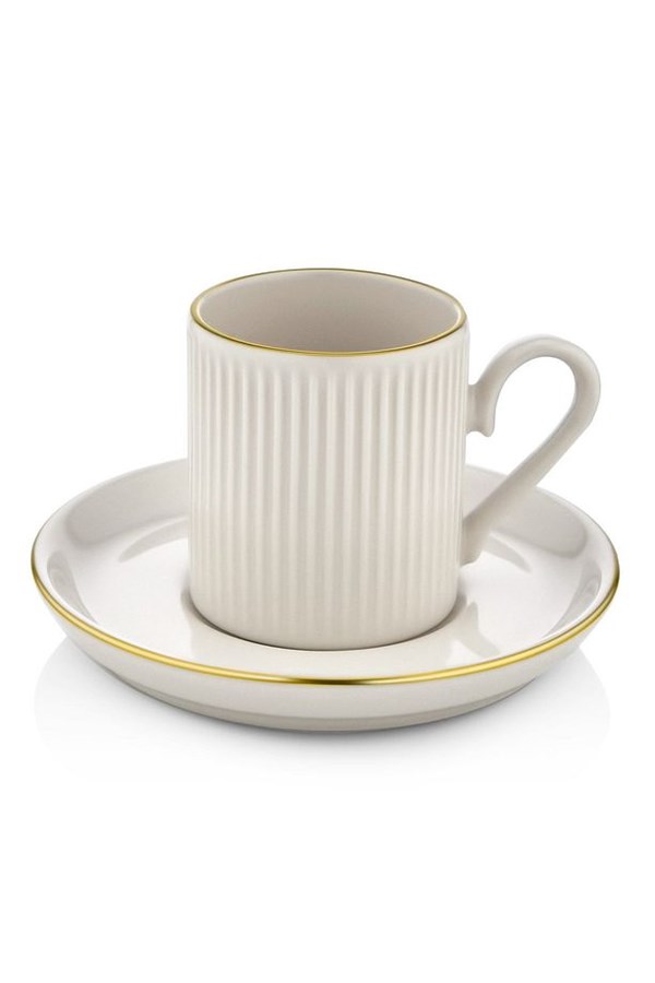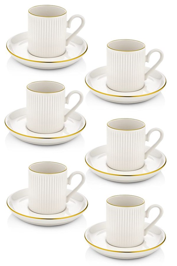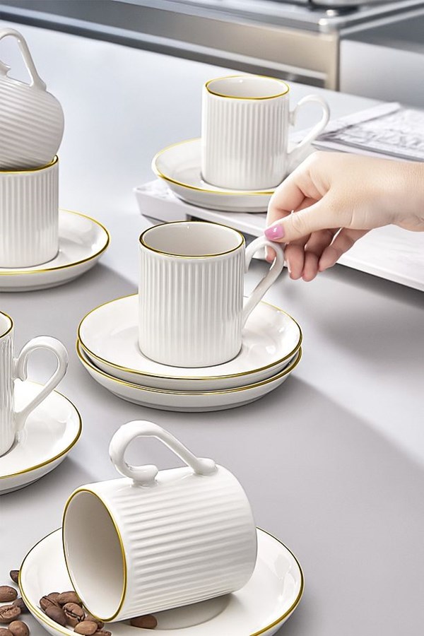 طقم فناجين قهوة مخططة من البورسلين الذهبي بتصميم خاص من كيتشن لايف ، 12 قطعة، مناسب لـ 6 أشخاص، سعة 100 مل - كوب قهوة