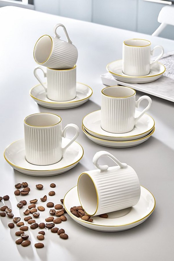 طقم فناجين قهوة كيتشن لايف مطلي بالذهب، ١٢ قطعة، لـ 6 أشخاص، سعة ١٠٠ مل