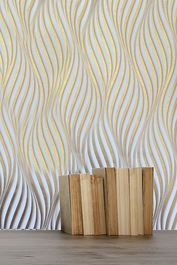 خلفيات Exclusive 2693 ورق حائط فاخر ثلاثي الأبعاد بلمسات حضرية ذهبية لامعة ومتموجة، 5.30 متر مربع