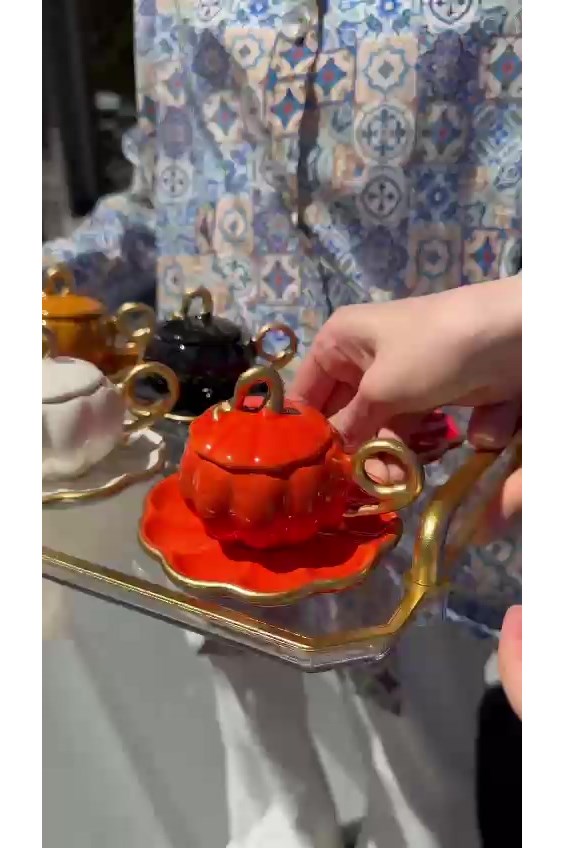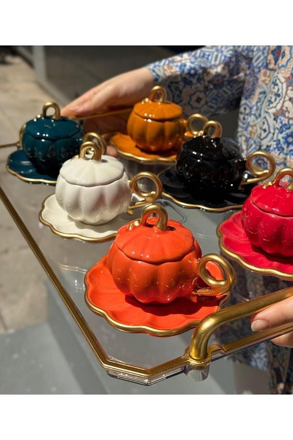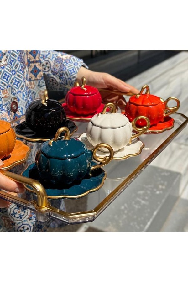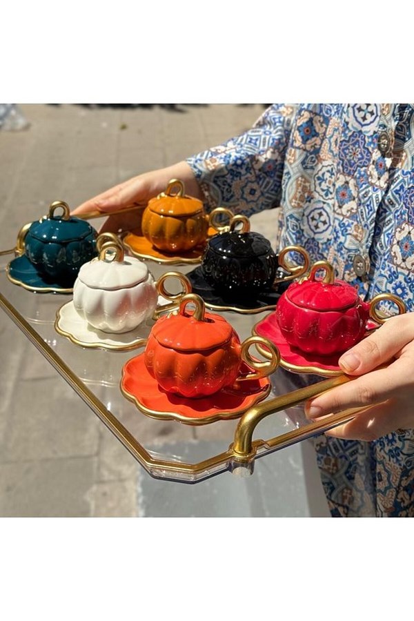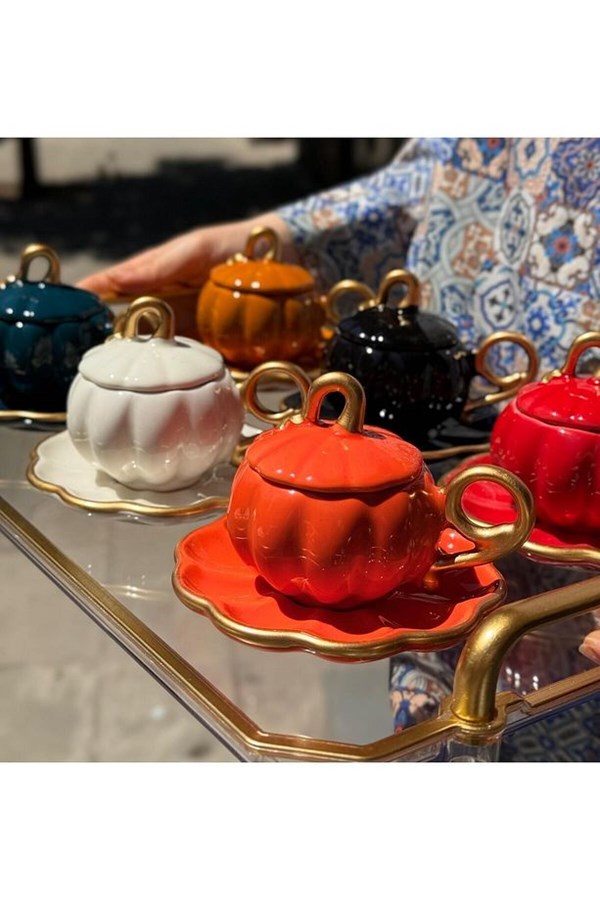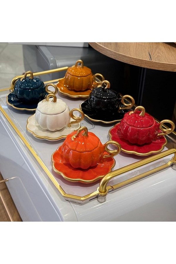 أكواب قهوة فاخرة من أونديكور ، 6 قطع، بلون اليقطين، مع أغطية