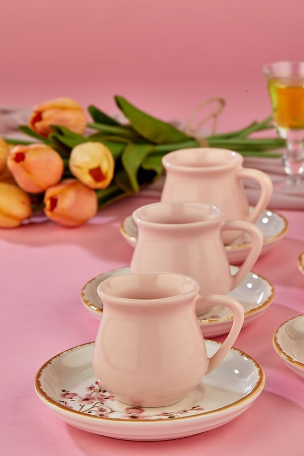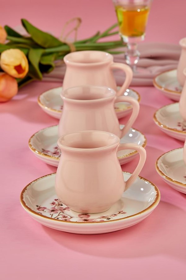 طقم فناجين قهوة سيراميك فاخر من Privates Sakura Blossom Pink، مكون من 12 قطعة، فنجان قهوة تركي